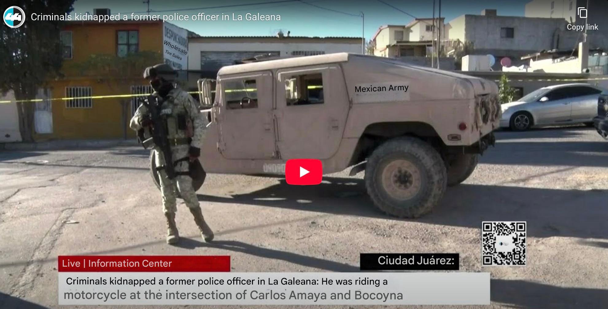 Someone was taken away. This was a kidnapping. There were gunshots. Sources indicate that the individual was an ex-police officer.